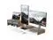 ^^ 3 Shelf Design with Free RotationThe hinges allow for unique setups. You can easily place this on a corner desk or in a straight-line, table like setup. Anything monitor larger than 25" to 27" is a perfect fit. Ideal for gamers or people working with multiple monitors. ^^ One-step Installation. Easy AssembleIt comes with pre-drilled holes, screw the base together and mount the 2 side parts to the middle section. It no extra tools and effort is required and instructions are included. One person can finish it in 5 minutes.