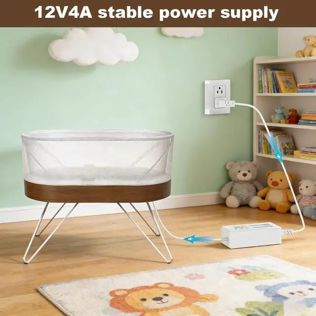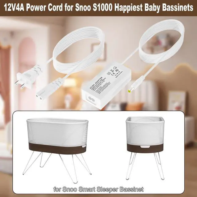 12V 4A Power Cord Compatible Modelsfor Snoo S1000 Happiest Baby Bassinet ^^ High safety factorOur 12V Power Supply is made of advanced IC chip with voltage protection, current protection, temperature protection, overload protection After strict testing to ensure that it is suitable for Snoo S1000 Happiest Baby Bassinet ^^ Product InformationInput Voltage AC100-240V;
