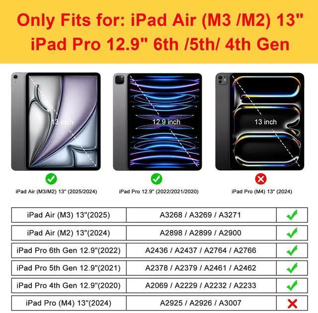 Perfect Fit & Compatibility: Designed exclusively for iPad Air 13 Inch 2025/2024, iPad Pro 12.9 6th/5th/4th gen ensuring precise cutouts for cameras, ports, and buttons ^^
