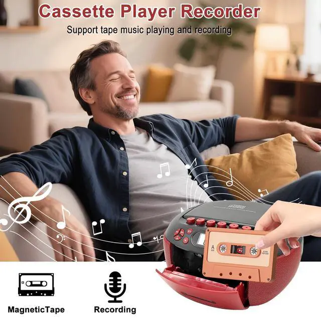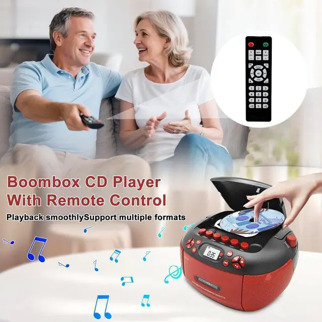 [CTDZLED Portable CD and Cassette Player Boombox] Enjoy your favorite music anywhere with our CTDZLED boombox, featuring CD playback, cassette player, USB input, 3.5 mm headphone jack, Bluetooth connectivity, dual speakers, and remote control operation. Perfect for elderly music lovers, gift-givers, and retro enthusiasts. Ideal for home, kitchen, bedroom, or on-the-go use. ^^ [Elegant Retro Design with Superior Sound Quality] Immerse yourself in nostalgia with our elegant cassette tape player and recorder. Relive your old mix tapes and cherish the good old days.