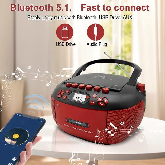 Equipped with a long antenna and upgrade chip, this boombox delivers excellent performance. Tune in to your favorite talk shows, sports events, and news broadcasts with ease. LCD screen for easy navigation and control. ^^ [AC/Battery Powered for On-The-Go Enjoyment] Our portable CD cassette player boombox can be powered by AC or batteries (not included), offering flexibility for both indoor and outdoor use. An ideal gift for parents, grandparents, kids, and friends. Comes with a detailed user manual and 12 months of warranty. Bring music to life with our CTDZLED boombox today!