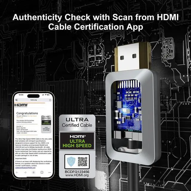 Certified AOC HDMI 2.1 CableGEOHNG HDMI 2.1 fiber optic cable is HDMI 2.1 certified and fully complies with the strict requirements of the HDMI Association, with a certification code label attached to the package.