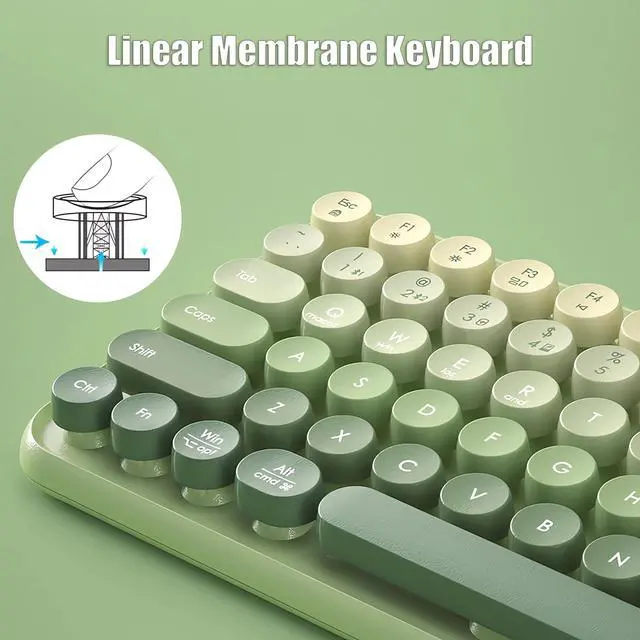 [Tri-Mode Connection] - Powerful 3-mode connection supports Wireless 2.4GH z/Bluetooth 5.0 /USB-C Wired. You can connect up to 2 bluetooth devices, 1 wireless 2.4GH z device and 1 wired device. Connect and switch devices easily with Fn+1~4. Compatible with Win, MacOS, IOS and Android systems. Switch the system by pressing Fn+Q/W/E/R according to the connected device. Support PC, Mac, smartphone, ipad and tablet. ^^ [Retro Aesthetic Typewriter Style Keyboard] - The typewriter keyboard is a fusion of retro style and modern design. Cute colorful round keycaps and advanced connection technology make typing more comfortable and enjoyable.