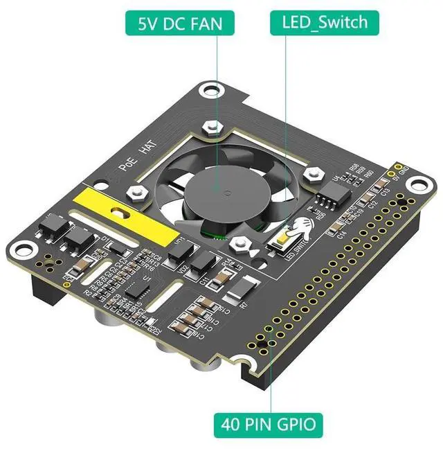 1.PoE HAT for Raspberry Pi 5 --- Power Over Ethernet HAT (G) for Raspberry Pi 5, easy to assemble into the official case. 5V 5A 25W Output, stable performance.