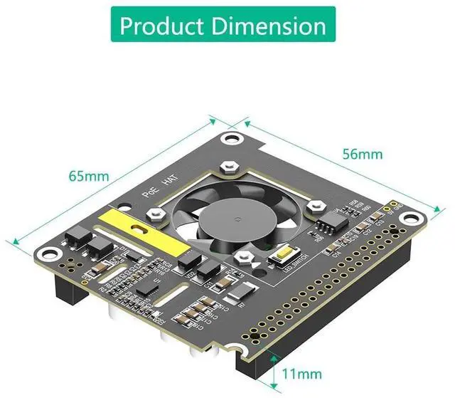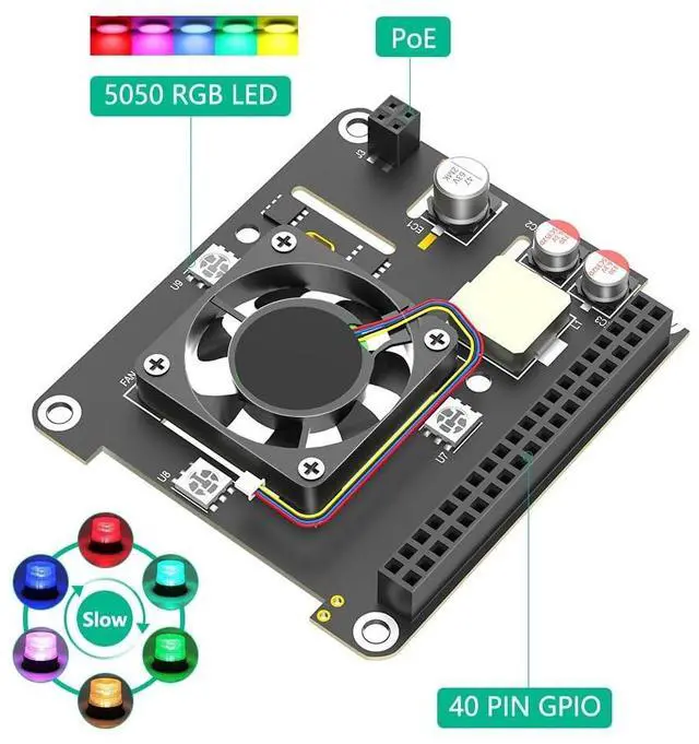 PoE HAT for Raspberry Pi 5 With Cooling Fan/Computer Module 5, With Automatic Discoloration LED, Power Over Ethernet HAT for Pi 5/CM5, 5V 5A 25W, IEEE 802.3 af/at-Compliant Network Standard, Pi 5 PoE HAT Compatible with Raspberry Pi 5 Official Case