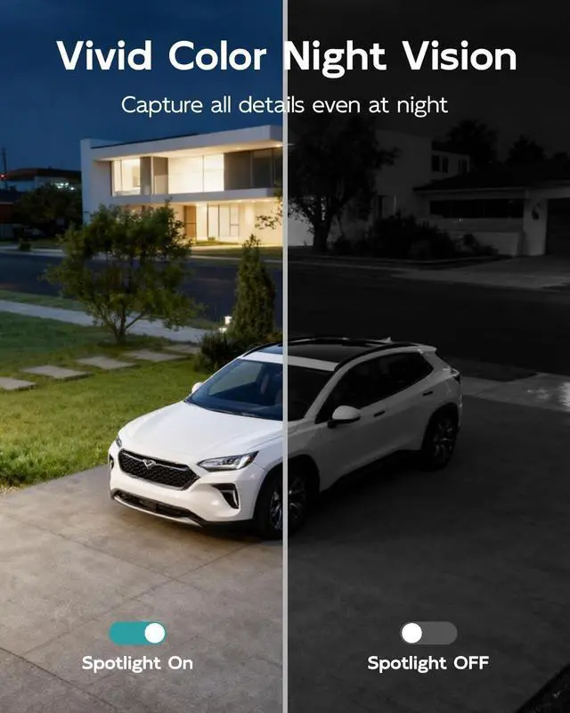 When human motion is detected, it automatically tracks the movement by adjusting its PTZ, ensuring detailed recording of every event and keeping your property under vigilant surveillance ^^ 2K Ultra HD Video & Full-Color Night VisionThe 3MP outdoor camera captures every detail, delivering a superior visual experience in 2K video quality compared to standard 1080P wireless cameras. The camera comes with a built-in floodlight that provides 33-ft color night vision. Even in low light, the floodlight ensures vivid, detailed imaging for reliable monitoring ^^ 2.4GH z & 5GHz WiFi SupportSupports both 2.4GH z and 5GHz Wi-Fi bands.