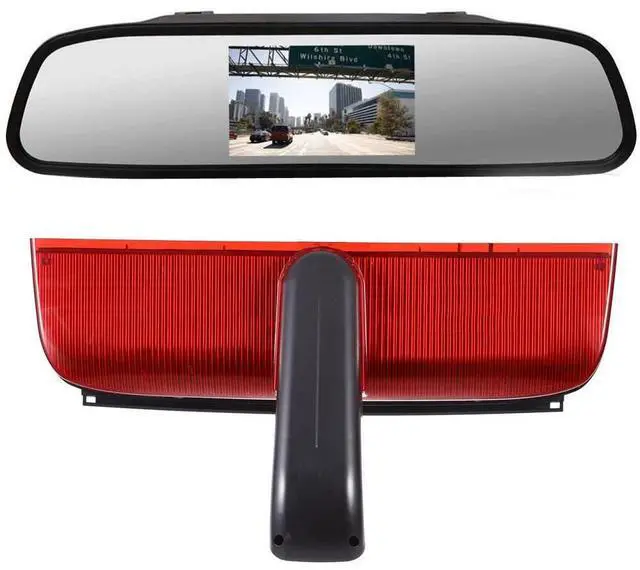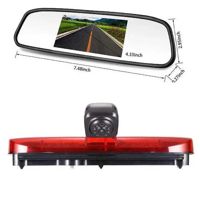 Rear View Mirror Monitor + Transporter Van Brake Light Reversing Camera Replacement forFord Transit Connect 2 II / XL Cargo Titanium Passenger Wagon (2014-2022)Features of the monitor: 4.3 " rearview mirror monitor, support car DVD, VCD, camera and other video devices. Easy installation without damaging any parts of the car: just clip on the original mirror.