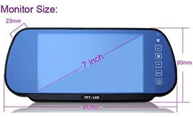way: Clip on your exist rear mirror (If you car doesn't install rear mirror, please chose stand monitor)In The Box1 * Rear mirror monitor1* Backup Camera1*10M Extension Cable1*Power Cable1 * ManualFQA1. How to wire it? It is very easy for wiring.