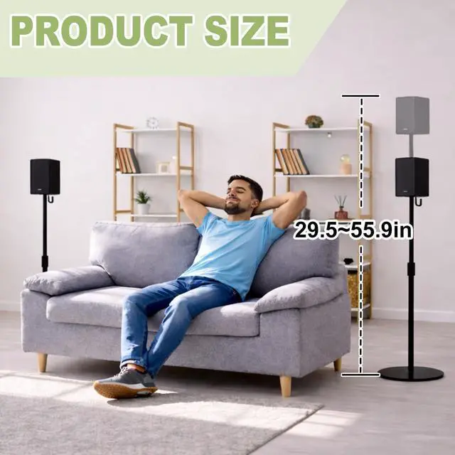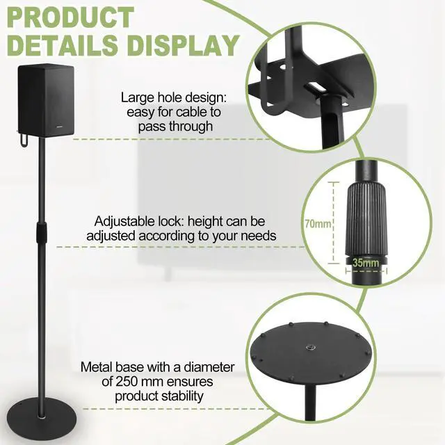 ^^ High Quality: The baking paint process used makes the product more anti-corrosive and prolongs its service life. The speaker stands are made of heavy-duty metal. The round metal base incorporates non-slip silicone pads to protect your floors from scratches and damage.