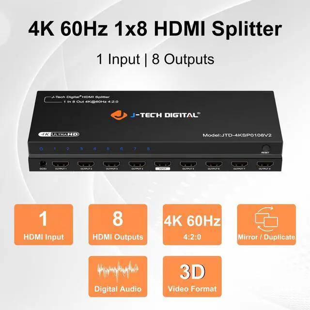Multi-Display Setup: Effortlessly connect up to eight HDMI displays or projectors from a single source. Ideal for home theaters, retail displays, classrooms, and presentations. ^^ Supports up to 4K@60Hz