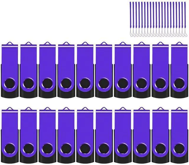 1GB Flash Drives 20 Pack 1GB USB drive pack with 20 lanyards. Can be rotated 360 degrees, detailed design makes it easy to use and carry. ^^ Store and Protect Data Go through a rigorous quality control process, the USB drive bulk 1GB has a mature appearance and stable high-standard storage technology, which helps us to protect our data from loss. ^^ Plug and PlayNo need to install any software, the USB memory bulk supports Windows/Linux/Mac OS and is compatible with USB 2.0 and below. Plug it into a USB port and works fast.