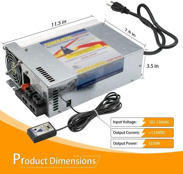 {PD9280 Converter Parameter}: Input Voltage/Hz: 105-130 VAC, 50/60 HZ; Output Current: 80A; Converter Type: Three-Stage Converter Charger; No Load Dc Output Voltage: 13.6 VDC +3 VDC; Full Load Output Voltage: > 12.6 VDC; Output Power: 1380W ^^ Automatic Three-Stage Battery Charging Maintains Your Batterys Life. Quiet Operation Is Assured As The Cooling Fan Runs Only When Needed ^^ Providing a clean and reliable 80 ampere DC power supply, it is the ideal choice for supplying power to electronic products and appliances