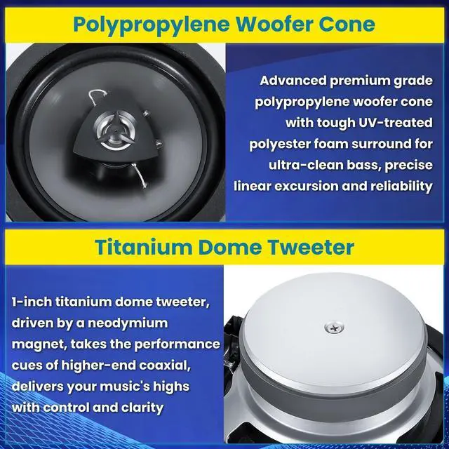 • Perfect Design Replaces OEM #77KICK10. Upgrade the old factory speakers in your car and enjoy remarkable in-car music experience. World-class advanced technology offers vibrant stereo sound, deep and powerful bass and cleaner highs, while improves sensitivity and reducing distortion. Professionally manufactured and tested to meet or exceed OEM specifications to ensure optimal performance and long-lasting reliability.