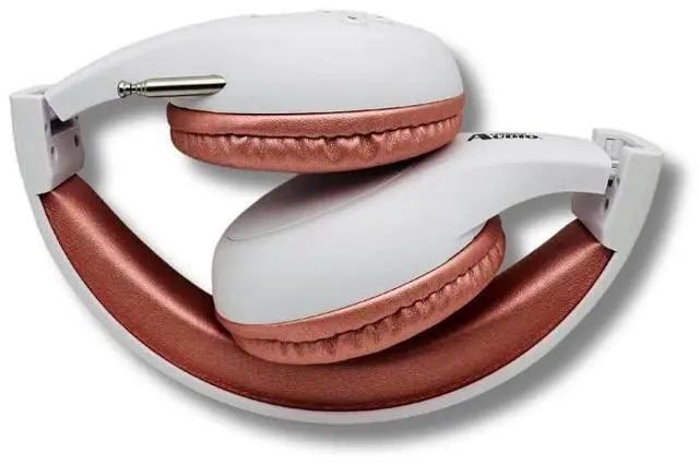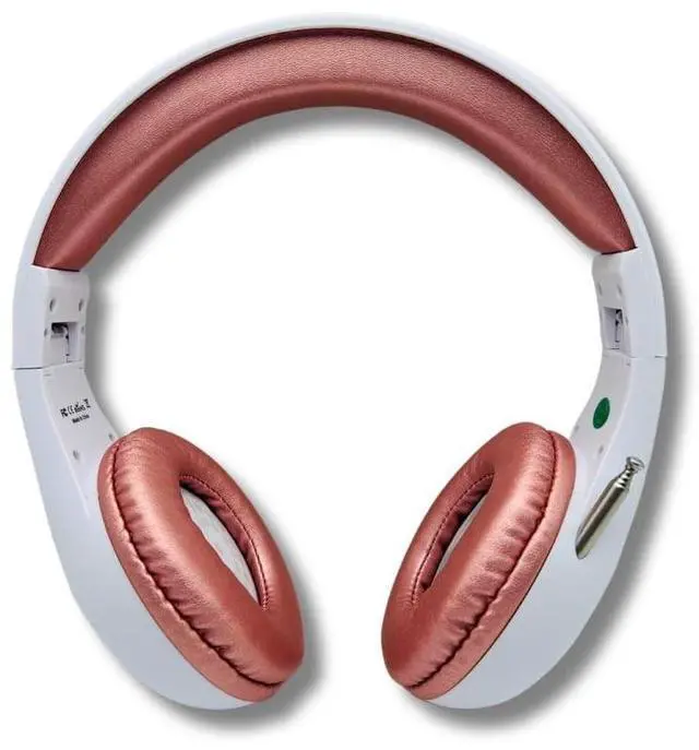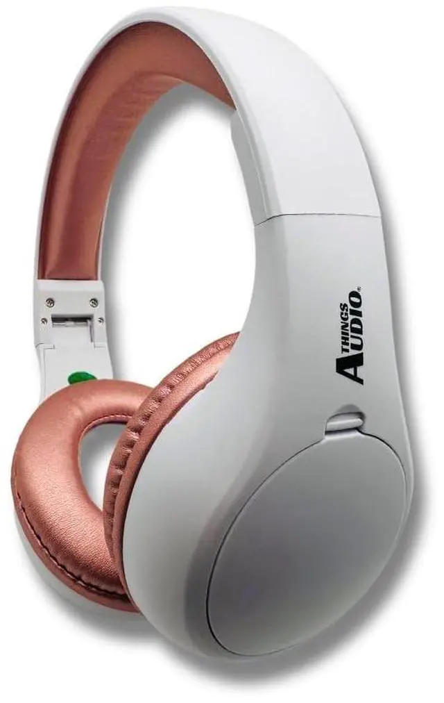 THINGS AUDIO Portable Personal FM Radio Headphones Pull-Out Antenna for Great Reception, Walking, Jogging, Relaxing, School, Talk Radio - Powered by 2AA Batteries (Not Included) (White & Rose Gold)