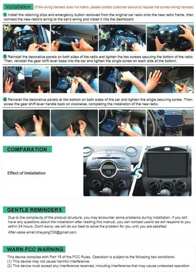 Radio: The Mazda 2 radio stereo comes with high quality FM/RDS radio, equipped with 30 preset radio stations, Internal equipment high-end radio chip, it have powerful noise reduction and anti-interference ability. You can listen to real-time traffic, news boradcasts, weather forecasts, etc. Car stereo with bluetooth make sure without distracting your attention from the road when answering important calls, Support hands-free calling, listening music and etc.