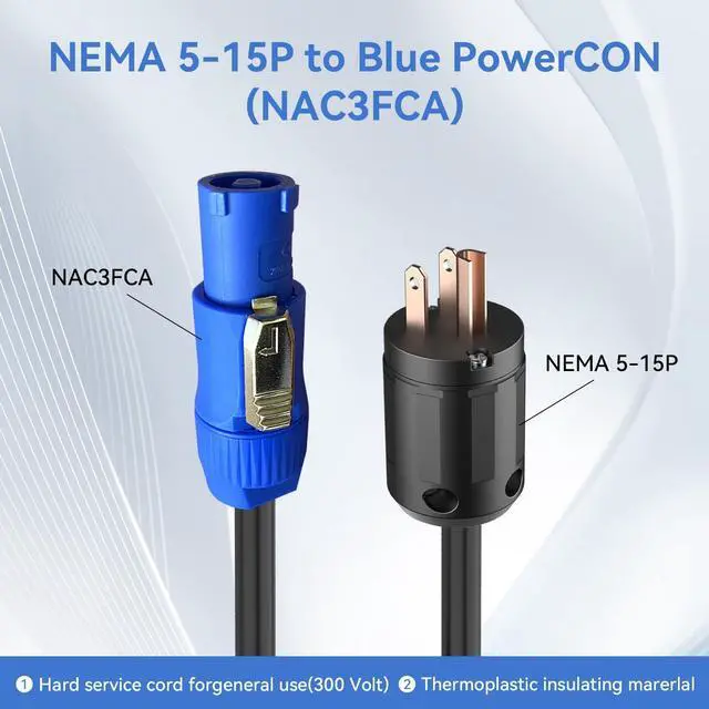 Secure connectionNEMA 5-15P male to NAC3FCA female powerCON cable extension provides a safer and more convenient power connection solution for Powercon and NEMA 5-15P interface connections. It is also specially designed for speakers, amplifiers, stage lights, etc.