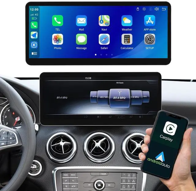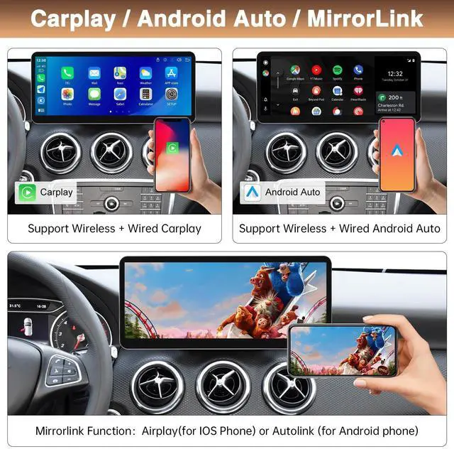 ^^ Car Touch Screen Built-in Wireless/Wired CarPlay and Android AutoUse your phone in safety while you drive. By simply saying "Hey Siri" or "OK Google", to get directions, make calls, send & receive messages, and enjoy your favorite music. Get access to voice commands, Siri & Google Assistant can help you do all of these things. ^^ Dual Systems for CarNot only retain the original OEM system functions, but also add wireless Carplay, Android Auto and mirrorlink Functions. One-click Dual-system Switch Seamlessly switch between Linux and original car systems.