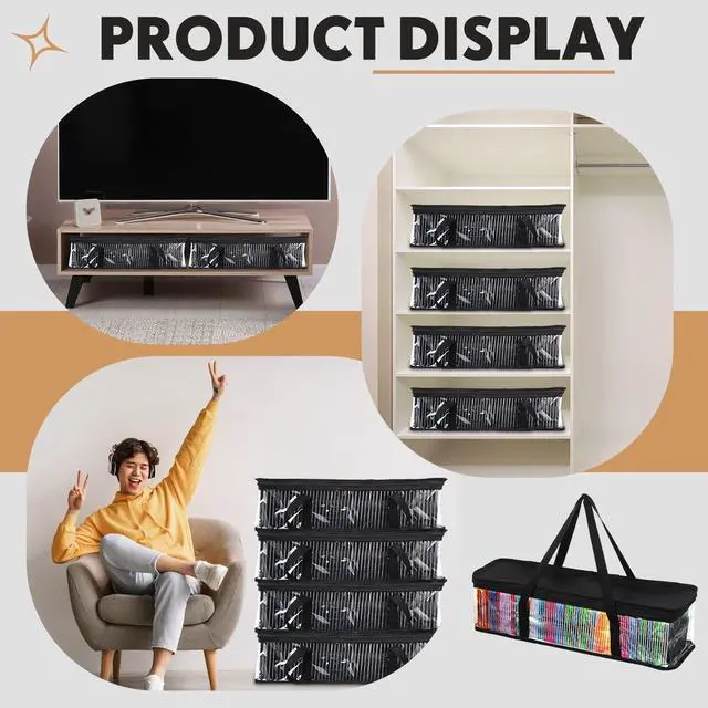 Use: these DVD storage containers are made of quality PVC material, and the handle is made of durable polyester fabric, sturdy and wear resistant, reliable and reusable, which allows you to easily carry and transport your collections, bringing you a lot of convenience