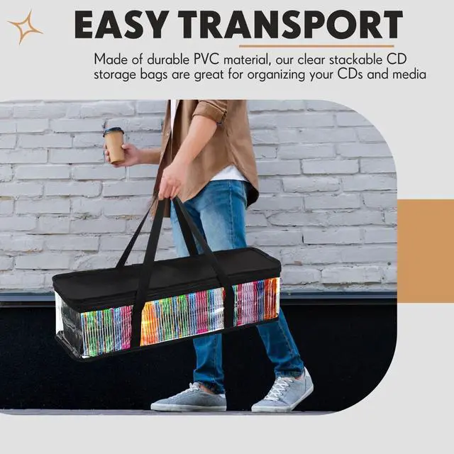 Double Stitched Design: our clear CD cases are designed with double stitched seams to enhance the durability of the bag; And the reinforced handles on both sides are also securely sewn onto the bag for easy portability, making it easier to move your CDs; Top down zipper opening allows easy access to CDs, and quality zippers won't accidentally unzip during transport ^^