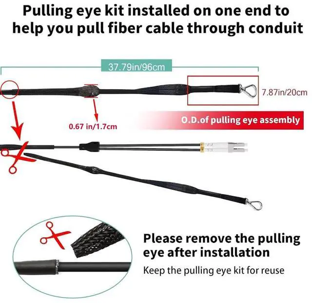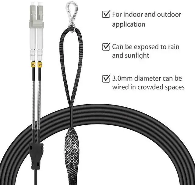 Industrial TPU material: The TPU Jacket features strong tensile strength, high abrasion resistance, Water Proof, Weather Proof, UV-resistant, and bending resistance. Suitable for Various Harsh Installation Environments such as roads & snowfields & construction sites. ^^ Pulling Eye Kit installed on one end: The pulling eye protects the connectors of the outdoor fibers and prevents the cables from twisting during the installation of conduits, ducts or risers. With this kit, you can pull this duplex jumpers through the conduit easily and quickly.