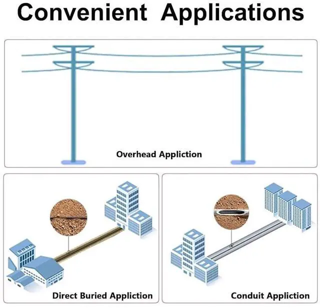 ^^ Data transmission: Our outdoor fiber optic cable is designed for high-speed data transmission and supports Ethernet connections up to 10G/40G/100G. OM3 outdoor armored fiber is compatible with a variety of fiber optic equipment, including switches and servers, making it suitable for indoor and outdoor network cabling in data centers, telecommunications systems, and more. ^^ Use for