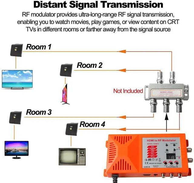 Settings: HDMI to RF modulator allows adjustment of audio volume and video brightness for optimal viewing experience.; supports resolutions up to 1080P for high-quality viewingLong-Range