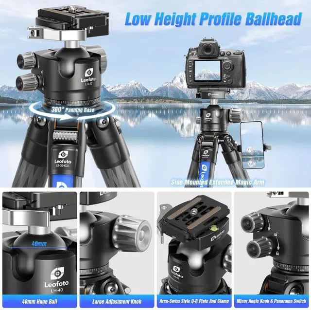 Reversible Center Column: The included Leofoto Carbon Fiber Add-On Column is an adjustable, two-section center column extension for tripods and monopods. Made up of two lightweight yet durable 10-layer carbon fiberScalable