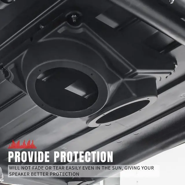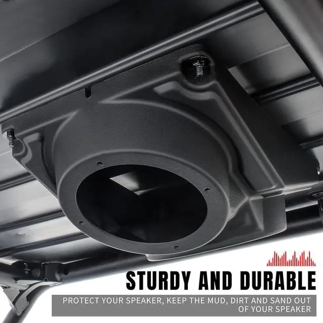 KATIMOTO speakers pod enclosure compatible with Polaris RZR / UTV / Cart ^^ Made of high-quality polypropylene, durable and lightweight. Protect your speaker, keep the mud, dirt and sand out of your speaker and prevent it from falling down. Most of the 6.5" Speakers can mount on a cab ^^ Not easy fade and split even under the scorching sun, and Unique appearance design, keeps your subwoofer pod fit it perfectly, make the UTV speaker pods match your RZR perfectly, feel the music effect of overhead surround ^^ Quick and easy installation, please refer to the installation video in the list before your installation ^^