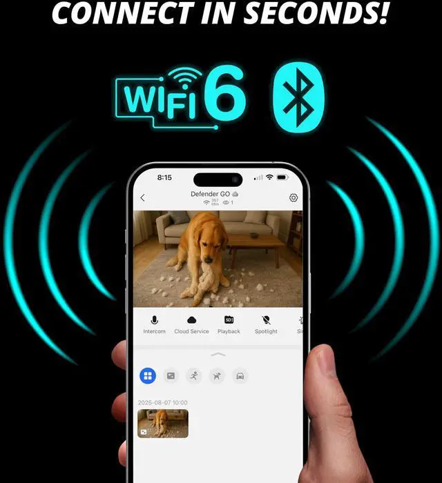 & APP: ONLY compatible with Defender ClearVu app. Can not be used with other Defender apps. Set up your wireless camera in under 3 minutes. Simply plug it in and connect via Wi-Fi 6 or Bluetooth using the Defender mobile app. Ideal for indoor cameras or security cameras wireless outdoor, this system requires no batteries. Perfect for home security, baby monitoring, or watching pets. ^^ CRYSTAL-CLEAR 2K