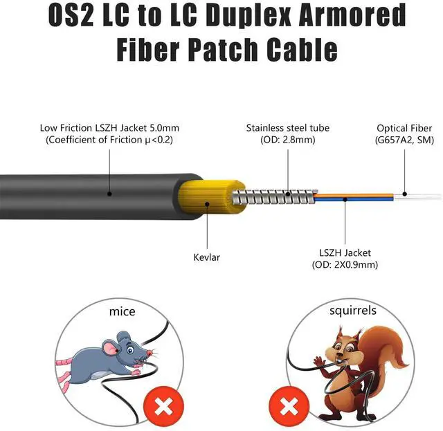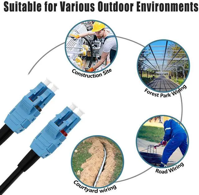 ^^ Armored for Strength: Our LC fiber jumper cable is built with a stainless steel tube inside to protect the inner core (fiber glass) from damage caused by pets and other external factors. It is pressure-resistant, wear-resistant, and heat-resistant, making it ideal for outdoor use.