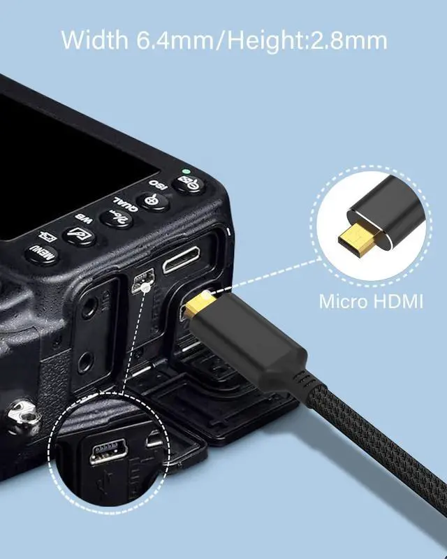Micro HDMI to DP The cable supports 4K@60Hz, 2K@165Hz Full HD resolution, 3D Technology, 18 Gbps bandwidth and Audio Return Channel, to deliver high-definition video and uncompressed multichannel digital audio ^^ Wide Compatibility Works with a range of devices including Hero 7/6/5/4, Raspberry Pi 4, Sony A5000/A6500/A6000/A6400, Nikon b500, Canon EOS M50, IdeaPad Miix 300 Tablet, Ideatab Miix 700/Miix 2/710/S6000, ThinkPad 10/8/Yoga ^^ Quality Enhancement Design Crafted with a nylon braided material and gold-plated connectors, this cable offers a robust 10000+ bend lifespan and superior shielding for long-lasting performance ^^ unidirectional connectionPlease note that this product can only be used from Micro HDMI to Displayport ^^ Customer Support If you have any questions or concerns, please feel free to contact our top customer support team, we provide 18 months of after-sales service guarantee