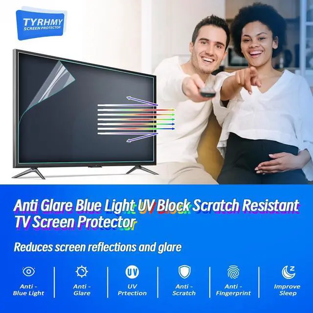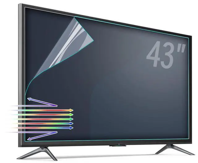 Inch TVs screen: Measuring W 37.08 in H 20.82 in, a small percentage of 43 inch screens will not fit. Please measure your screen to ensure proper fit and coverage ^^ Superior Anti-GlareThe premium matte coating effectively reduces reflections and glare, providing a comfortable viewing experience even in bright indoor or outdoor settings. Enjoy your favorite shows without light interference ^^ Important Outdoor Usage GuidelinesWhen used outdoors, place your TV under a roof or in a shaded area. Direct sunlight on the screen will affect the anti-glare function, and the protector cannot prevent issues caused by prolonged sunlight exposure ^^ Effective Blue Light FilteringBuilt-in blue light filter blocks harmful blue light (380nm-495nm) to reduce eye strain and support better sleep after long viewing sessions ^^ Easy Installation with Reliable ProtectionComes with clear step-by-step instructions for a hassle-free installation. Ensure your TV screen is clean and dry before applying the protector for the best results, Protects against fingerprints and scratches while maintaining clear image quality, perfect for families and long-term use