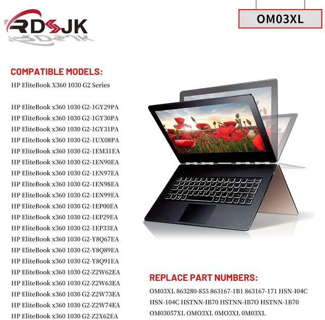 Part Numbers: OM03XL 863280-855 863167-1B1 863167-171 HSN-I04C HSN-104C HSTNN-IB70 HSTNN-IB7O HSTNN-1B70 OM03057XL OMO3XL 0MO3XL 0M03XLNote: Please check if this battery is compatible with your computer before purchasing. If you are not sure for that, please contact us!