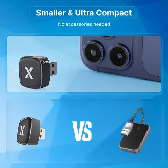 Seamless Wireless Conversion Instantly convert factory wired CarPlay/Android Auto to wireless. Experience full integration with original vehicle controlstouchscreen, steering wheel buttons, and voice assistantsfor a seamless, factory-like transition without the tether ^^ 50% Smaller & Premium Build Quality Ultra-compact, mini-sized body is 50% smaller than traditional car play dongles. Crafted with a premium aluminum alloy housing and glass top cover for superior heat dissipation, outperforming cheap plastic alternatives in both durability and aesthetics ^^ Octa-Core Power & Zero Latency Crafted with a premium aluminum alloy and glass finish for superior heat dissipation.