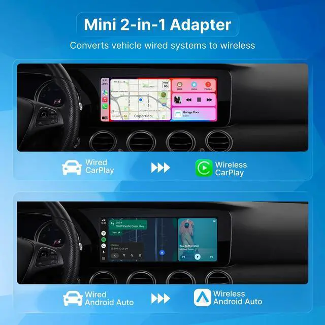Featuring a dual 5G chip and WiFi 6 technology, it ensures a lightning-fast, stable connection with zero lag for music and navigation ^^ 1-Min Setup & Auto-Reconnect Works with iPhone & Android phone. Simple plug-and-play pairing in under 60 seconds. Once paired, it automatically connects to your phone every time you start the engine. Includes lifetime OTA online updates to ensure long-term compatibility and performance ^^ Stable Connection, Safer Driving The rugged, cable-free build stays securely in place even on bumpy roads. No swinging, no accidental disconnectionsjust a focused, distraction-free driving experience with a minimalist interior look ^^ Broad Compatibility Works with 800+ vehicle models with factory wired CarPlay/Android Auto.