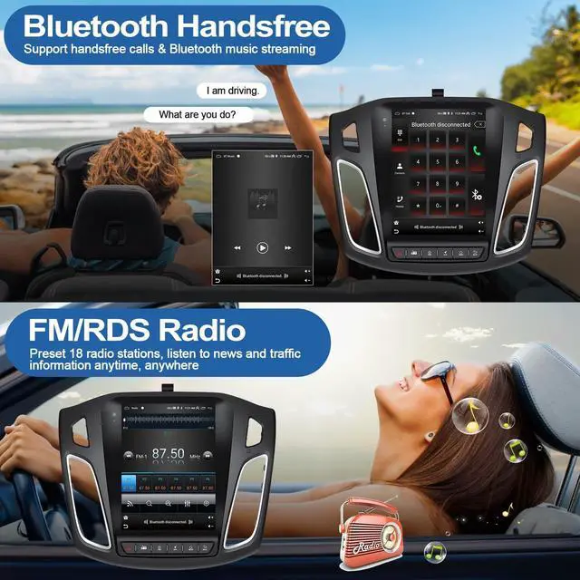 [APPLICABLE CAR MODELS] - Designed with newest Android system, 9.7 inch 1080P HD vertical touch screen, 2G RAM+64G ROM, this android head unit is perfectly suitable for 2012 2013 2014 2015 2016 2017 2018 Ford Focus Radio, including a Canbus ^^ [WIRELESS & WIRED CARPLAY & ANDROID AUTO] - The car stereo has both wireless and wired connectivity options for apple carplay / Android auto / mirrorlink, available for map navigation, music streaming, calls and messages, Siri/Google voice assistant, keep you stay focused, connected and entertained ^^ [GPS & WIFI, ONLINE & OFFLINE MAPS] - Built-in GPS receiver and WiFi connectivity, enabling both online and offline navigation to plan your route.