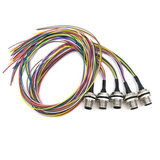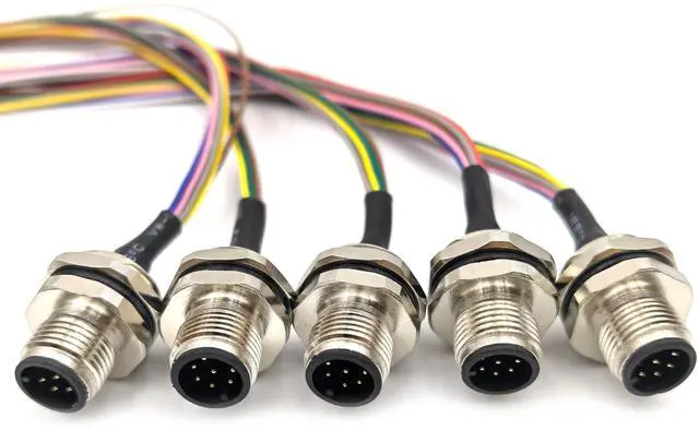 [M12 8Pin Male Connector Cable]: M12 8Pin male single ended connector, Panel Receptacles, A Coded, Straight, Back Mount, For Panel/Cable, Solder Type, IP67 Waterproof, Unshiled, 1.64ft/0.5Meter;