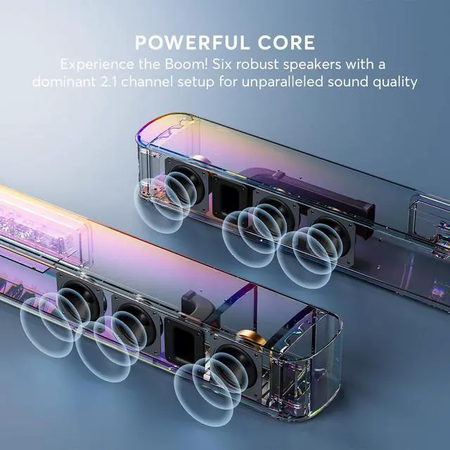 Dolby Atmos: Experience audio like never before with this sound bar with built-in subwoofer featuring with Dolby Atmos technology and a robust 2.1 channel setup. Immerse yourself in the intricate and rich soundscapes that only a tv speaker sound bar with Dolby Atmos enabled, like the Geoyeao, can provide. Level up your auditory experience, be it music, movies, or gaming. ^^ With a dynamic 240W power output: The Geoyeao sound bar features a total of six speakers- two 2.25" full range speakers and four 2.25" bass speakers, providing a robust output of 190W. Transforming any ordinary living room into an immersive Home Theater System audio journey. Feel the raw power and clarity every time you play your favorite tune. ^^ Wireless Connectivity and