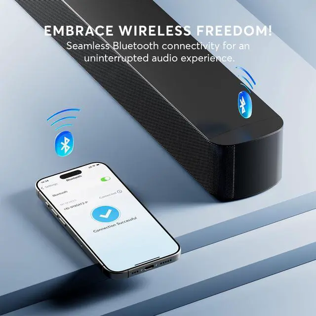 3D Surround Sound: With both Bluetooth and HDMI eARC support, making it perfect as a wireless / wired sound bar for smart tv, PC, projector or desktop for a seamless audio experience. The 3D surround sound technology brings the cinema right into your home, delivering a personalized and immersive audio journey.