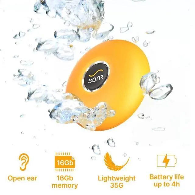 Listen Underwater with Confidence 100% waterproof bone conduction MP3 player designed for swimmers, triathletes, and open-water training. ^^ No Earbuds, No LimitsBone conduction technology delivers clear, balanced sound through your cheekbones. Perfect for pool or ocean swimming. ^^ Easy to UseOne-button control and fast file upload from any computer. 16GB internal memory stores up to 2, 5003, 000 songs (MP3, MP2, MP4, FLAC, M4A, AAC). ^^ Long Battery LifeUp to 4 hours of continuous underwater playback per charge. Up to 10 days of standby time when not in active use.