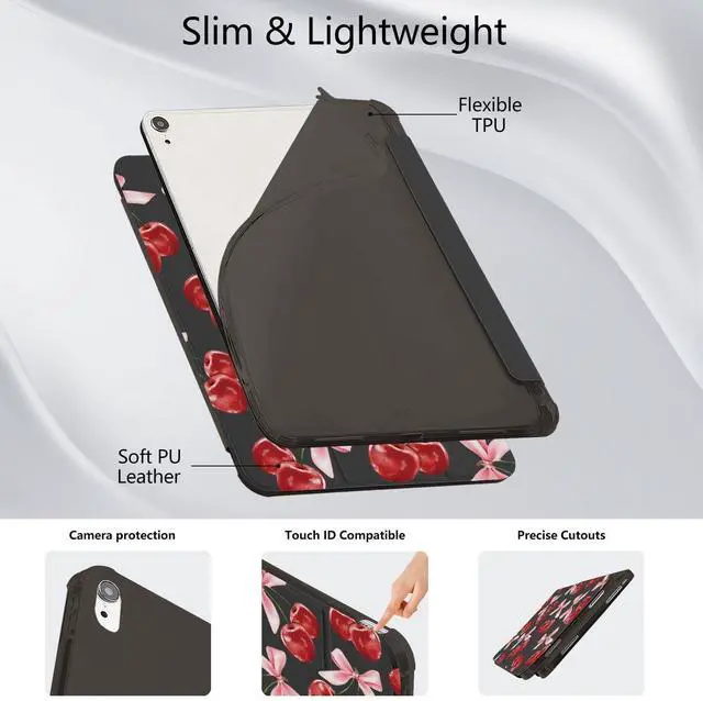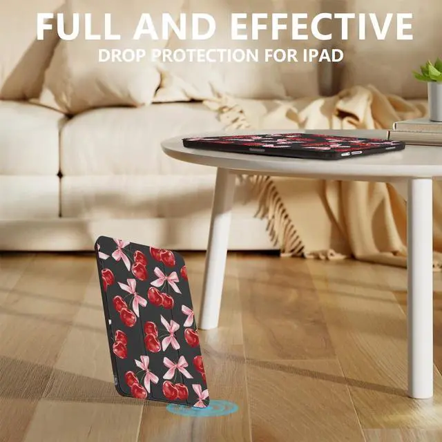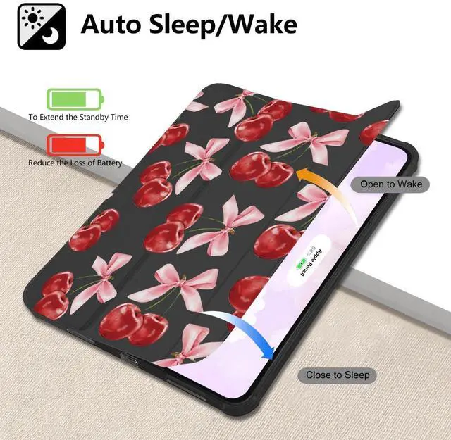 Automatic sleep/wake up&built-in pen holder: This cute kawaii cherry bow case for ipad can be opened without touching a button. When the case is opened, it will automatically wake up. When you close it, the pad will automatically enter sleep mode. Helps to extend battery life. This Aesthetic pattern case for ipad has a hidden slot designed specifically for storing pencils, making it easy to carry pencils with you.