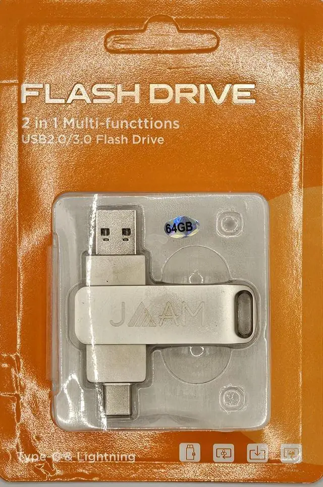 This versatile 2-in-1 multi-function USB drive offers seamless data transfer between devices with USB Type-C and Lightning connectors. Compact and portable, it allows you to effortlessly share files, photos, videos, and more. The durable metal casing with a carabiner keyring ensures convenient access and protection. With USB 2.0 and 3.0 compatibility, this drive provides fast data transfer speeds. Its sleek design and dual connectivity make it an essential accessory for modern digital life.