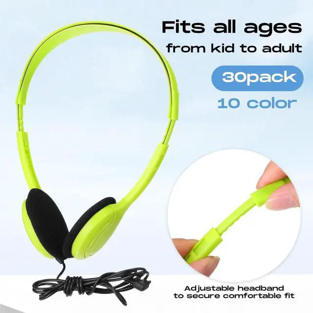 Features: This bulk set of over-ear headphones is designed to support modern group learning, computer-based activities and shared listening environments. It delivers reliable audio performance for online lessons, reading programs, language learning, multimedia projects and assessment scenarios. Each headset is individually wrapped in an OPP bag, allowing for quick distribution and organized storage. The adjustable headband combined with soft ear pads ensures a comfortable fit during extended use, whether for device-based tasks, assessments or guided learning sessions. Constructed with a durable ABS shell and a flexible PVC cable measuring approximately 1.2 meters ( 3.94 ft), these headphones are built for long-term use in high-traffic environments. The standard 3.5 mm plug provides wide compatibility with commonly used audio devices. Reliable, easy to manage and optimized for large-scale use, this bulk headphone set is a practical audio solution for libraries, training programs, computer labs and other shared learning or work settings.