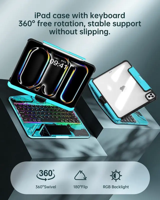 Precise Keyboard Case Compatibility This keyboard case is only compatible with the 2024 11-inch iPad Pro (M4 chip), corresponding to models A2836 and A2837. Please check the model number starting with "A" on the back of your device before purchasing. This also provides a smoother user experience with the iPad Pro 11 M4 keyboard case. ^^ iPad Pro 11 m4 Case with Keyboard Stand that Can Rotate 360 The bearing hinge design supports 360-degree rotation, allowing you to find the most comfortable viewing angle for your iPad keyboard case from any angle. ^^ Keyboard Case Suitable for Convenient Use in Multiple ScenariosWhether working from home, studying on campus, or traveling outdoors, this iPad Pro 11 Case with Keyboard can be used seamlessly.