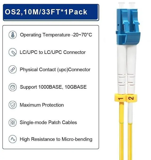 • Multi Scenario Application: OS2 LC to LC Single Mode Fiber Patch Cable can provide 10G/40G ethernet connections for high density application in gigabit ethernet, fiber channel, local area networks, data center, premise installation, wide area networks, commercial and so on, 10Gb singlemode optic cable for connecting 10G SR, 10G LRM, SFP+ transceivers, media converters and optical fiber NIC's