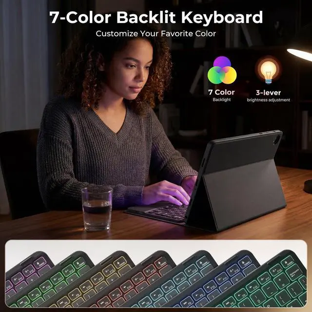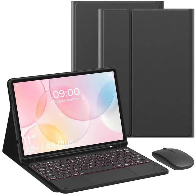 Keyboard Case for Samsung Galaxy Tab A11+ Plus 2025/A9+ 11 2023-7 Color Backlit Detachable Tablet Keyboard Cover with Touchpad -Detachable Folio Keyboard Cover with Mouse. (Black)