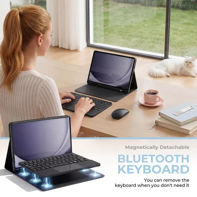 Conveniently Versatile:The Samsung Galaxy Tab A9 Plus Keyboard Case offers unparalleled convenience and multifunctionality,The protective case has 3 anti-slip grooves, Built-in pencil holder makes it easy to carry the pencil with your device, which is convenient for entertainment and office.