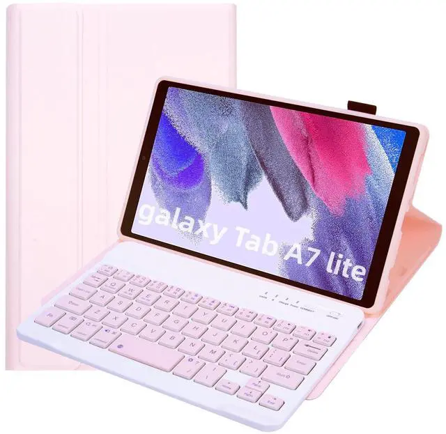 Note: You can click "Settings" >> "About Tablet PC" to view the model. ^^ MULTI VIEWING ANGLES BUILT-IN S PENCIL HOLDER Made of durable PU and leather material, A slim and lightweight profile make the keyboard case easy to use and take along in a briefcase, handbag or backpack; Built-in magnets helps fixate keyboard while typing, this will bring you excellent typing experience. Convert your iPad into a laptop and easily adjust the viewing angle to any level, perfect for working, writing, or watching videos at business, school, travel, and home. The protective case comes with S pen holder It is convenient to keep your S Pen together, dont worry about losing it. ^^ WIRELESS & FUNCTIONAL WELL-MADE KEYBOARD Detachable Bluetooth keyboard new design colorful buttons are very cute and stylish, make your Galaxy Tab Tab A7 LITE Tablet more colorful, and make your work and study happier, The magnetic separate keyboard is suitable for 3 systems of WindowsAndroidiOS, Not only can be used with Galaxy tablet, It can also be used with other tablet computers and mobile phones. adding more spacious, scissor structure keys means a more relaxed and tactile typing experience for you.