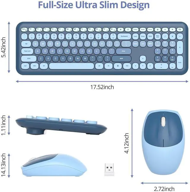Quiet Typing Experience: Designed with low-noise keys, this cute blue wireless keyboard and mouse ensures minimal disturbance in shared spaces. The soft keyboard feel and ergonomic layout provide a comfortable typing experience ^^ Easy to Use & Plug and