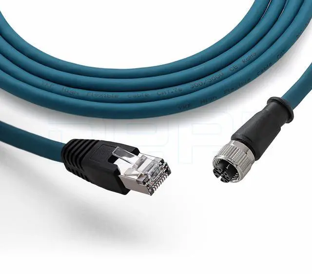 • M12 to RJ45 cables are designed for high speed gigabit applications like industrial and commercial data transfer. applications in harsh environments like Industrial Ethernet;Test equipment;Sensor and Actuators;I//O Connectivity